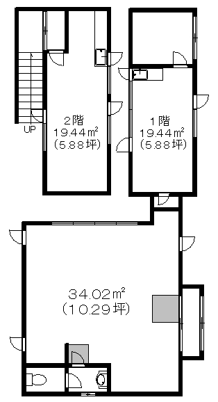 | 建物面積 | 1階店舗 69.42㎡(20.99坪) 2階事務所 69.42㎡(20.99坪) 合 計 138.84㎡(41.98坪) |